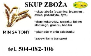 | Kupię zboża paszowe: pszenicę, pszenżyto, żyto, owies, jęczmień, kukurydza, rzepak,łubin słodki, bobik oraz mieszanki zbożowe. Interesują mnie ilości cało samochodowe (min. 23 tony).odbieramy własnym transportem. Płatność w momencie podstawienia się kierowcy MOŻLIWOŚĆ NEGOCJACJI CEN !!!!!!! tel.504082106 |